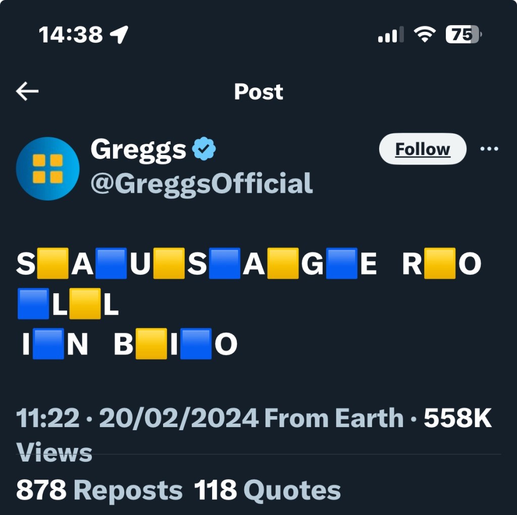 “@GreggsOfficial thank you for this totally unreadable tweet.