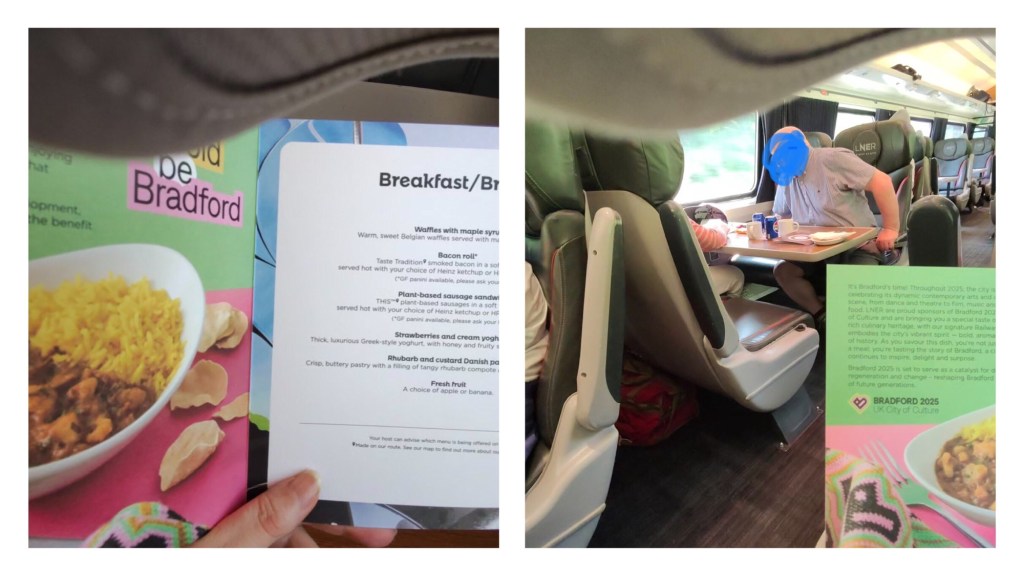 The text reads: It’s Bradford’s time! Throughout 2025, the city is celebrating its dynamic contemporary arts and culture scene, from dance and theatre to film, music and especially food. LNER are proud sponsors of Bradford 2025 UK City of Culture and are bringing you a special taste of Bradford’s rich culinary heritage, with our signature Railway Curry that embodies the city’s vibrant spirit – bold, aromatic, and full of history. As you savour this dish, you’re not just enjoying a meal; you’re tasting the story of Bradford, a city that continues to inspire, delight and surprise. Bradford 2025 is set to serve as a catalyst for development, regeneration and change – reshaping Bradford for the benefit of future generations. (Meta Ai)”